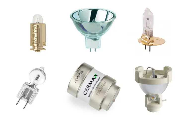 Lámparas para distintas especialidades: oftalmología, odontología, fisioterapia, quirófano. Philips, Osram, Heine, Zeiss, Welch Allyn, Olympus, Riester, Excelitas…